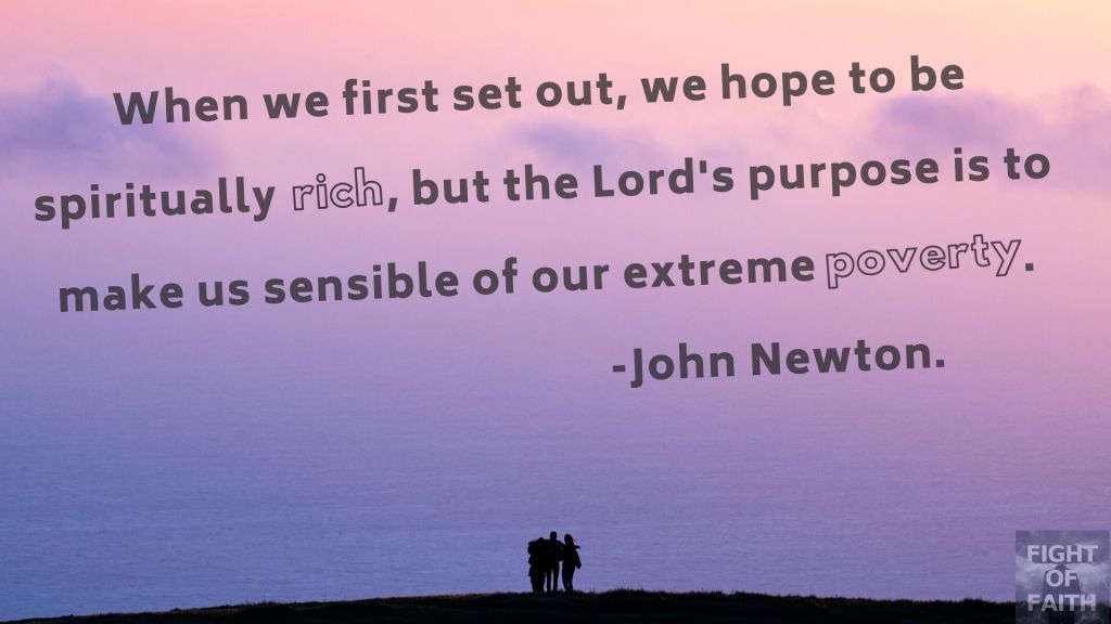 When we first set out, we hope to be spiritually rich–but the Lord’s purpose is to make us sensible of our extreme poverty. We wish to be something–but He is teaching us that we are nothing.