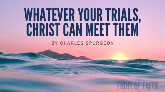 Whatever trials you have, my dear brother, Christ is all in all to meet them. Are you poor? He will make you rich in your poverty by His consoling presence. Are you sick? He will make your bed in your sickness, and so will make your sick-bed better than the walks of health. Are you persecuted? If it is for His sake, you may even leap for joy. Are you oppressed? Remember how He also was oppressed and afflicted; and you will have fellowship with Him in his sufferings.