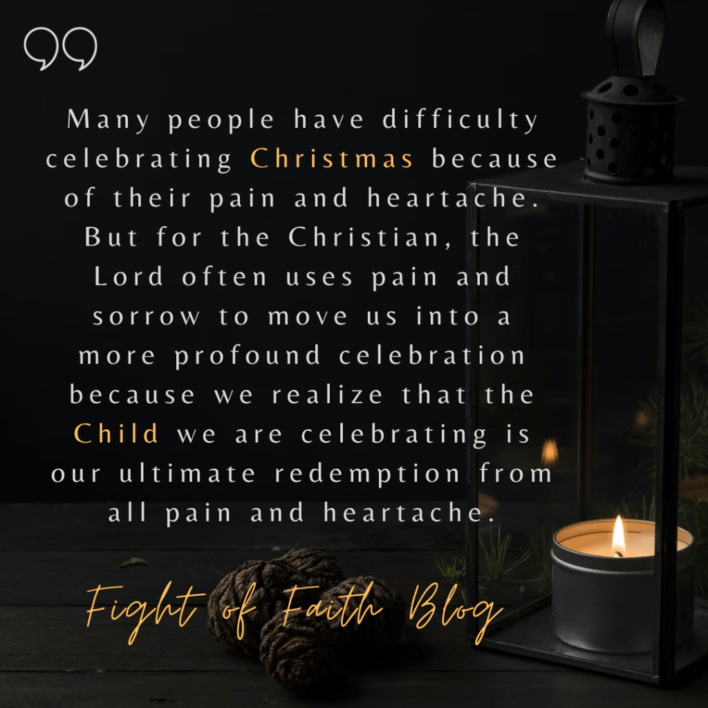 Many people have difficulty celebrating Christmas because of their pain and heartache. But for the Christian, the Lord often uses pain and sorrow to move us into a more profound celebration because we realize that the Child we are celebrating is our ultimate redemption from all pain and heartache. The following profound thought by G. Campbell Morgan tells us why.