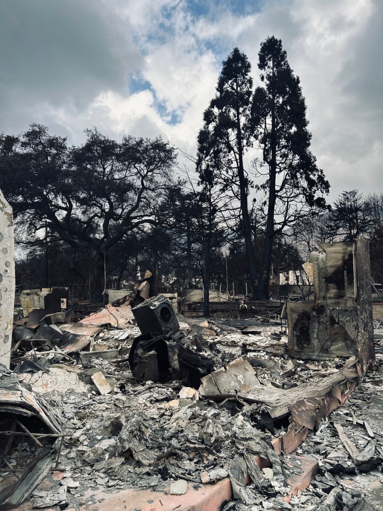 These pictures are only a fraction of the Eaton Fire’s devastation. Toxic ash parades the air as chimneys stand like obelisks through the countless miles of destruction. It’s a humbling sight to see so many people’s lives lying in ruins. Once, they were some of my favorite places to go, trails to hike, and now they are fleshless, gutted, and burned. I don’t know the people to whom this particular home belonged, but its destruction is a sober reminder that it can happen to anyone. No amount of insurance can keep us from losing it all. The only thing that lasts is Jesus. He cannot be destroyed, burned, or lost; in fact, he holds onto his children and won’t let go.